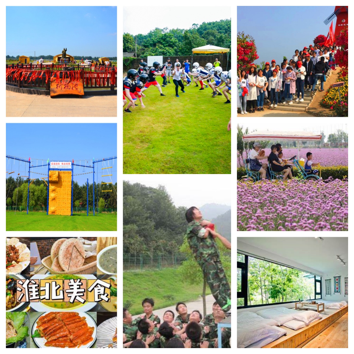 淮北西域花海拓展基地淮北西域花海拓展基地在淮海西域花海民族文化風(fēng)情園景區(qū)內(nèi),位于淮北市杜集區(qū)高岳雙樓村,占地500畝,景區(qū)項(xiàng)目規(guī)劃分類包含生態(tài)采摘園、動(dòng)物觀光園、熱帶植物園區(qū)、四季花海園占地300余畝。休閑游樂區(qū)、百畝蒙古包群、越野場(chǎng)、休閑中心、西域文化博物館、垂釣中心、燈光演出廣場(chǎng)、戶外酒吧、篝火廣場(chǎng)、盆景園、水上樂園等計(jì)劃占地面積200余畝。其余以園區(qū)服務(wù)項(xiàng)目為中心輻射擴(kuò)展,包含文化中心,高端休閑會(huì)所,現(xiàn)代游樂場(chǎng),人工滑草、體能拓展中心等。