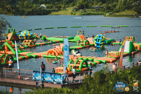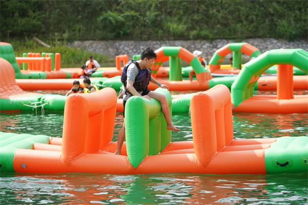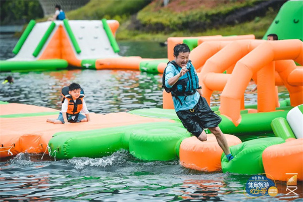 水上大沖關(guān)項(xiàng)目設(shè)施備受大家的歡迎主要由充氣氣模搭建,包含蜻蜓點(diǎn)水、手忙腳亂、太空漫步、魚(yú)躍龍門等關(guān)卡,還有滑梯、水上足球、水上蹦床等,驚險(xiǎn)刺激的趣味體驗(yàn),關(guān)卡重重的水上游戲,不同的關(guān)卡為游客提供了豐富的戲水玩法,不少大小朋友在闖關(guān)、冒險(xiǎn),玩得不亦樂(lè)乎。