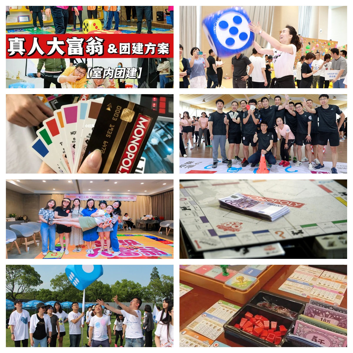 將大富翁與團(tuán)建相結(jié)合,保留大富翁的趣味與策略性,加深團(tuán)建體驗(yàn)屬性,形成了真人大富翁團(tuán)建項(xiàng)目;在活動(dòng)中,不同的小組要模擬不同的大富翁角色,采用超大尺寸的地圖和骰子,全程圍繞大富翁地圖進(jìn)行探索尋寶,里面加入了市場(chǎng)、證券、股票等活動(dòng)元素,讓我們不僅僅在體驗(yàn)團(tuán)建游戲,通過(guò)完成真人大富翁地圖、團(tuán)隊(duì)挑戰(zhàn)、智慧闖關(guān)賺取錢幣,發(fā)揮團(tuán)隊(duì)智慧,最終完成奪冠的目標(biāo),還能在團(tuán)建游戲中提升團(tuán)隊(duì)凝聚力和執(zhí)行力;。