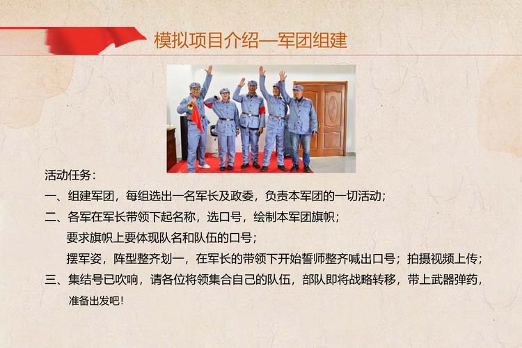 以紅軍長征為主題,體驗長征的艱難險阻,回顧歷史、領會長征精神。